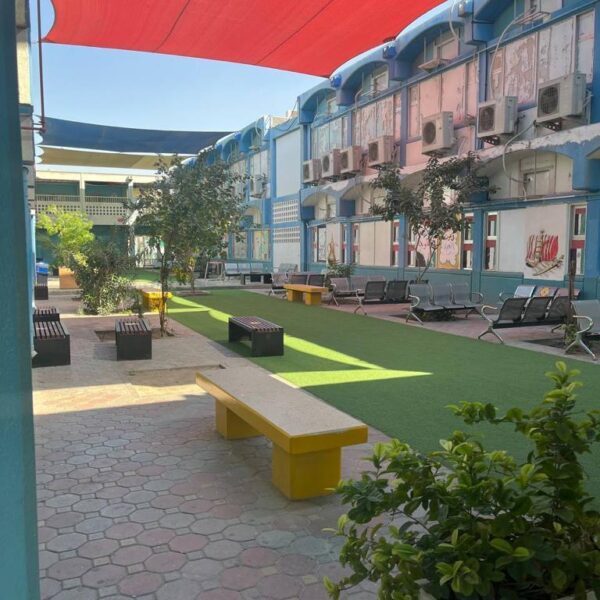 الساحة تضمن مناطق جلوس وملاعب ومناطق أخرى للطلاب للتجمع والتحدث. يوفر هذا فرصة للطلاب لتطوير مهارات الاتصال والتعامل مع الآخرين.