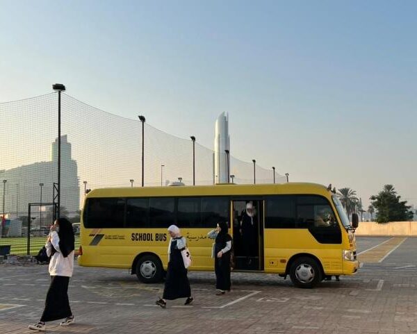 تلتزم خدمات النقل المدرسي التي تقدمها المدرسة بضوابط ومقاييس ، لتحقيق السلامة والأمان لجميع الطلبة، إضافة إلى توفير الأعداد الكافية من السائقين والمشرفين المؤهلين، وحشد الإمكانيات الضخمة لتطبيق المواصفات المطلوبة. إسهاماً منها في توفير بيئة مدرسية ناجحة تحقق تطلعات المجتمع، وتلبي احتياجاته التنموية